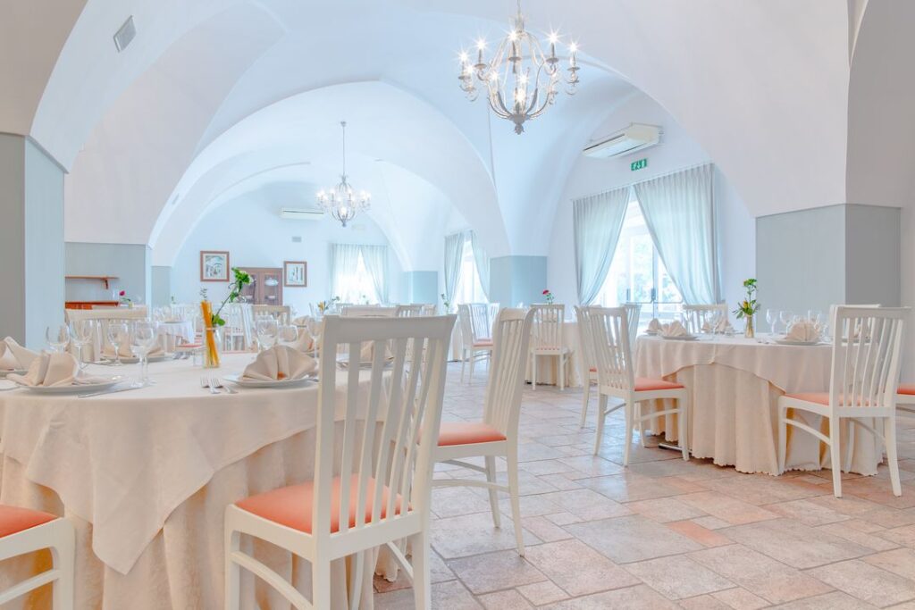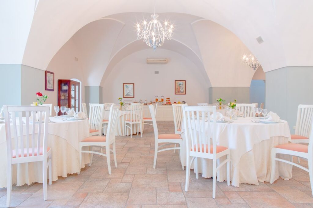 Masseria Li Sauli mette a disposizione dei propri ospiti un Ristorante distinto da una location elegante ed esclusiva che i sapienti lavori di restauro hanno riportato all’antico splendore, preservandone l’architettura originaria nelle sue linee essenziali e pulite. Elementi antichi e moderni convivono in perfetta armonia dando vita ad ambienti raffinati e contemporanei, resi unici dall’ attenzione riservata alla cura dei dettagli.